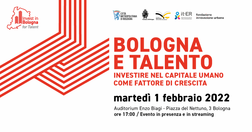 Martedì 1 febbraio 2022 alle ore 17 presso l’Auditorium Enzo Biagi in Salaborsa a Bologna si terrà l’evento “Bologna e Talento: investire nel capitale umano come fattore di crescita”.